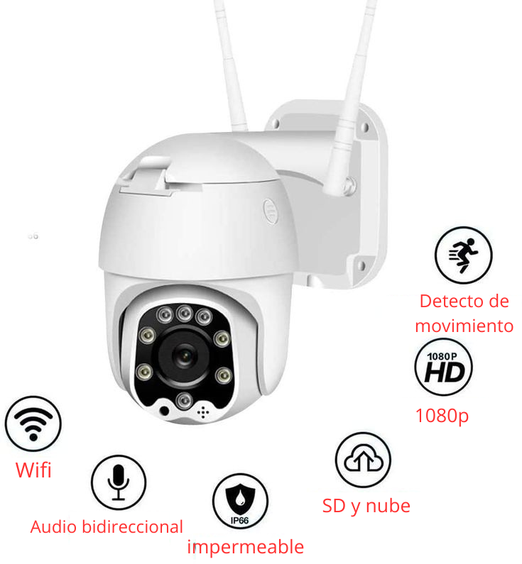 Conectividad Wi-Fi: Compatible con redes Wi-Fi 2.4GHz (802.11b/g/n). Permite acceder a la cámara desde cualquier lugar mediante la aplicación V380 Pro.